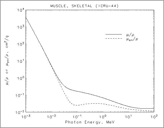 The data for the attenuation coefficients (λ in our model) is given at the end of this page. Here is the executive summary. For soft x-rays λ is 0.4 1/cm for bone and 0.043 1/cm for muscle. For hard x-rays λ is 0.06 1/cm for bone and 0.03 1/cm for muscle.