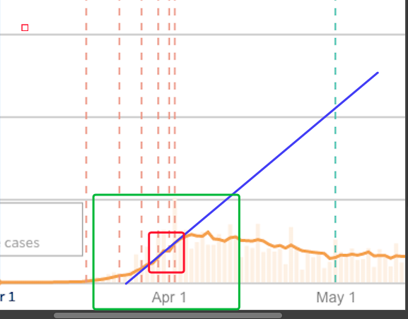 Let's compare that to the slope back at the end of March or begining of April. Here's the plot detail....
