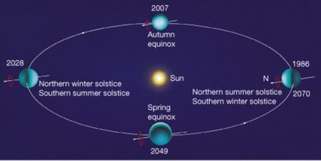 Uranus is a planet with a really big tilt -- think about what the seasons might feel like there?