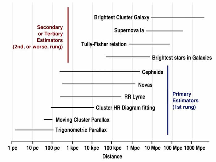 An important thing to note about these first three steps in the distance ladder is that there are always some objects for which we can measure the distance using two or more techniques. Ultimately this provides both a cross check and a tool for connecting techniques that work at shorter distances with those that work at longer distances.