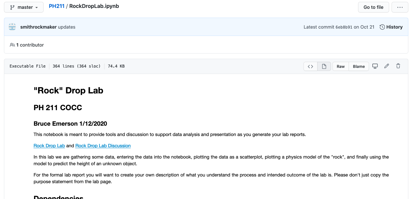 Because the notebooks that I create as templates for your labs and other class activities are constantly being updated and modified establishing a github to keep things current for you the student seemed like an important step. On this page I will hope to document useful tools or strategies for working with a github repository (a repo).