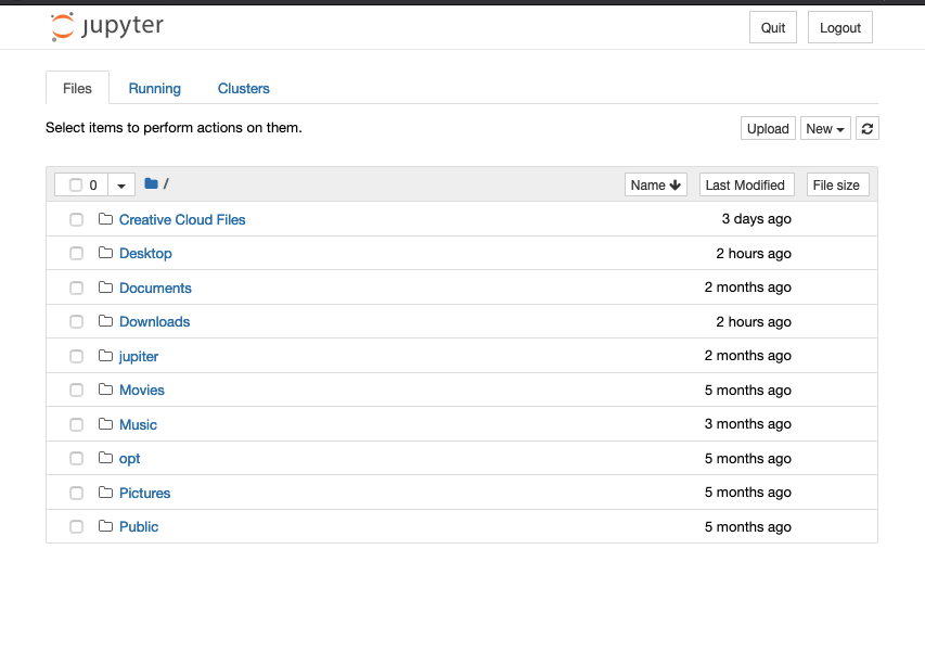 1: Jupyter Notebook Landing Page: