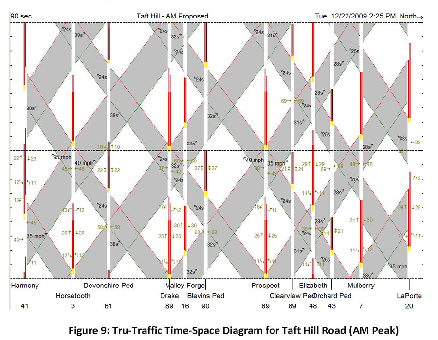 Here is another application of kinematics and graphing in the real world. This traffic study plot is from Fort Collins Colorado and I know of a COCC engineering student who is currently doing this same sort of work for ODOT here in Central Oregon. Take some time and think about what the meaning of all the different parts of the data are. Are the lights equally spaced? I've driven this street and you would think that a light every other block would be perfectly uniform.