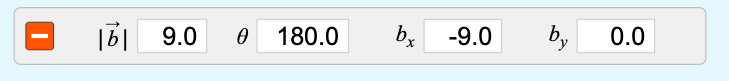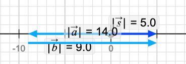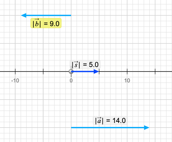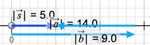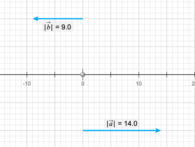Because they are limited to 1D (horizontal if that's what you picked) you can only choose whether they point left or right and you can make each one longer or shorter. Here is an example. I checked the values checkbox in the top right so it tells me how long each vector is. Again, there is a nomenclature to understand here. |a| is the magnitude (length) of the vector a. The most common use of version of this nomenclature is |a| = a where the magnitude of 'a' (the vector- boldface) is 'a' (the magnitude of 'a' - not boldface).