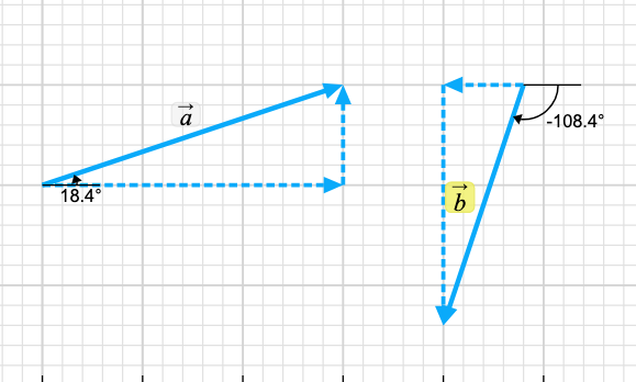 |Ax| = |A|cos(θ), θ = 18.4o or |Ax| = |A|sin(α), α = 71.6o, + in this coordinate system
