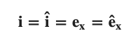 There are a variety of different notation systems for unit vectors. We will most commonly use the i, j, k notation system for the unit vectors in the x, y, and z directions respectively. Below are the most common notations for the unit vector in the x direction.