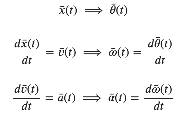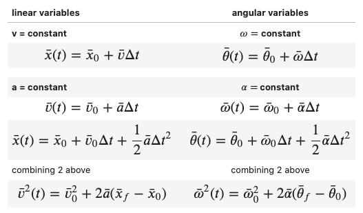 Nor will you be surprised that, because of the equivalence between the two, that our kinematic relationships that we derived from Newton's Laws also apply to angular variables.