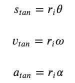 The tangential and angular variables that describe a particular point on a rotating object are related by these expressions....