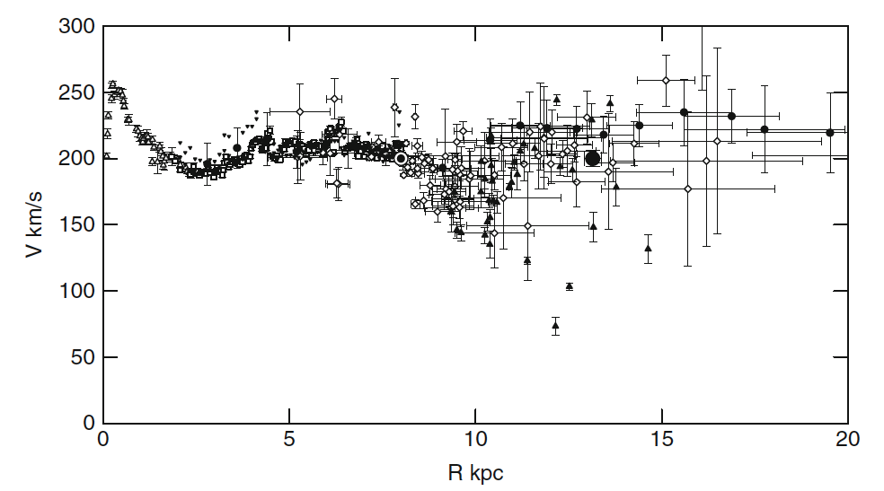 ....indeed, we can figure out what the distribution of mass would have to be to give the rotation curves that we see. The conclusion we are driven to is either Newton's Law doesn't work the same at the larger scales OR there is a whole bunch of stuff out there that we can't see. It's matter that is inconveniently dark -- which is why we call it dark matter. Here's how we sort out the models at this time....