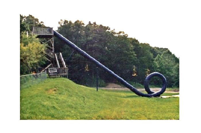 Students have pointed out that there was once a version of this setting at a waterpark in N.J.. As we will see in a future calculation it is quite difficult to acheive the speeds needed at the bottom to make it over the top never mind the 6g forces at the bottom. Use your physics and be smart if you meet one of these.