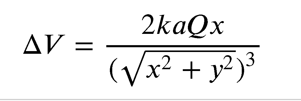 The electric potential around a dipole consisting of two charges Q separated by a distance 2a is given by the following expression: