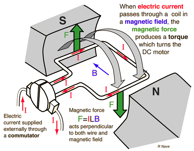 The real purpose of this discussion is to develop mental models for how we discuss and explore the physics of currents flowing in rotating coils within magnetic fields. Just figuring out how to sketch such things is a challenge in it's own right. Here are several images that are typical of those used to discuss DC electric motors.