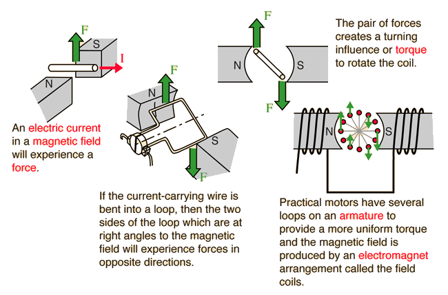 AC motors are similar but different because the current cycles forward and back without a commutator.