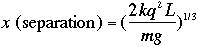 6) Two tiny conducting balls of identical mass and charge q are hanging from insulating strings of length L. Show that the separation between the balls when they settle to equilibrium is (in the small angle approximation) given by