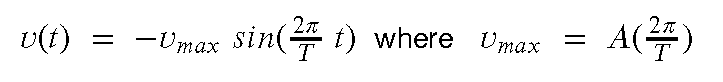 Equations (1), (3), and (5) are the critical ones to keep track of . They tell us that if we know A and T we can calculate vmax and amax from those simple observable features of the motion.
