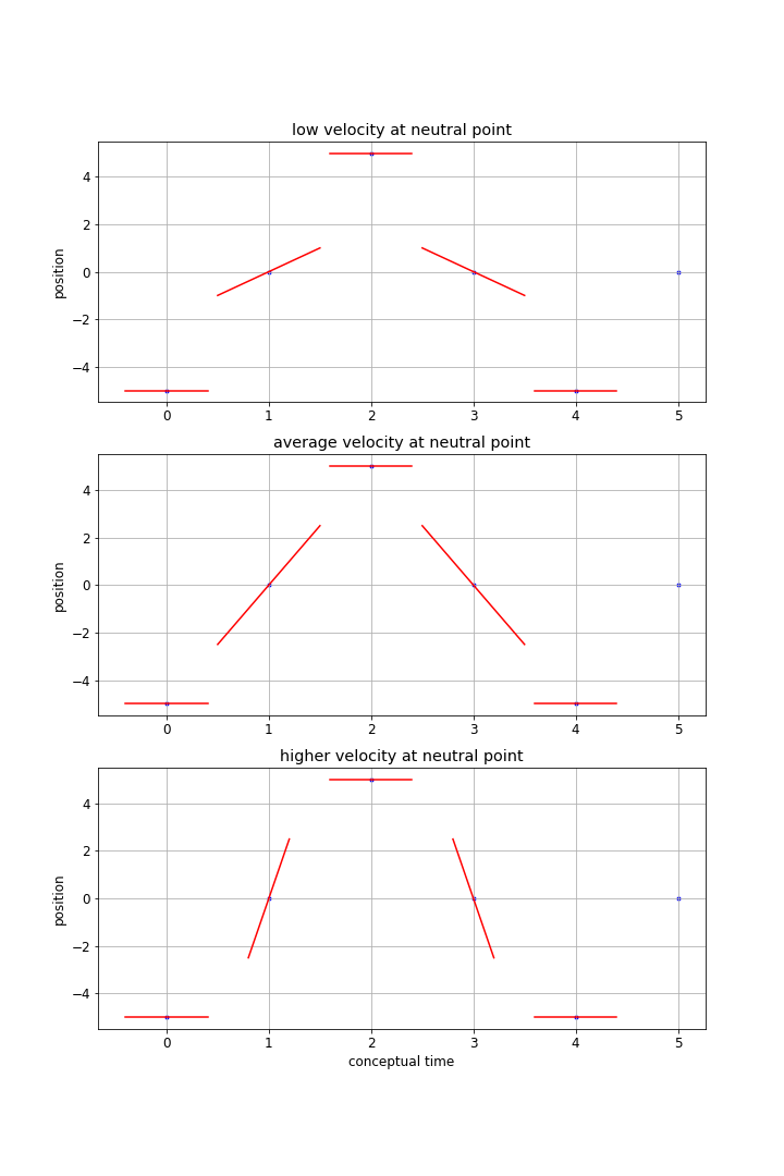 If we call the neutral position 0 for all of the variables the we would represent what we see something like this. You min/max/neutral may start at different points in the process but are likely to be similar.