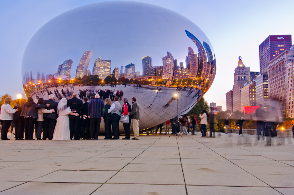 The Chicago Bean is a curved specular surface which leads to lots of interesting experiences if you are ever there. (It's quite cool!)
