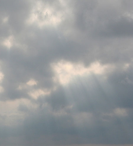 Rays (light rays or sound rays) are an alternative representation of the waves. The 'ray' points in the direction the wave is moving (like v in the image above) which is perpendicular to wavefront. The ray feels a little like a 'beam' of light but it is generally a representation of plane waves rather than a beam. The image below shows what we call 'ray's of light' are a physical manifestation of the idea of rays. The light is a spherical wave originating at the sun which is very nearly a plane wave as it arrives at the earth.
