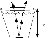 Consider a coin in the bottom of a bucket whose depth is d. Show that your eyes perceive the light to be coming from a point d*= d/n below the surface of the water. Consider the paths of light leaving a point in the center of the coin. Then use geometry to show that they appear to originate at a depth d*. This is why coins in a water fountain appear closer to the surface then they are.