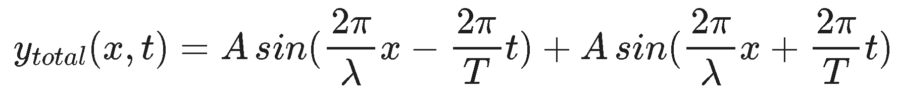 No doubt it is a little enthusiastic to assert that a simple wave travelling through a medium is something we have a solid understanding of. We haven't talked about absorption, polarization, refraction, and other effects that apply to every individual wave. On the other hand, isolated waves traveling through an endless medium are not the most common setting in which we observe waves. In true physics fashion we will first consider 2 waves (such a leap!) and in particular 2 waves travelling in opposite directions but otherwise sharing the same wave speed, frequency, and amplitude. While this might seem unnecessarily limiting it turns out, like neglecting air drag in PH211, we can develop a lot of insight into important settings without complicating the math so much. We will also explore, in future classes, two waves traveling in the same direction but different distances (interference), two waves traveling in the same direction with different frequencies (beat frequencies), along with polarization, reflection, and refraction. Buckle up and let's dive into the pool.......